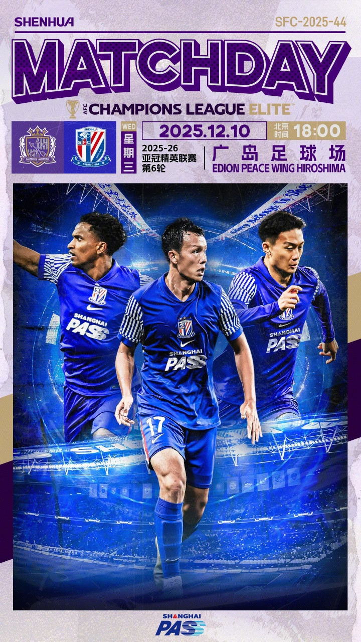 直播吧12月10日讯北京时间18点,亚冠精英联赛东亚区第6轮,广岛三箭vs上海申花,赛前双方首发公布。